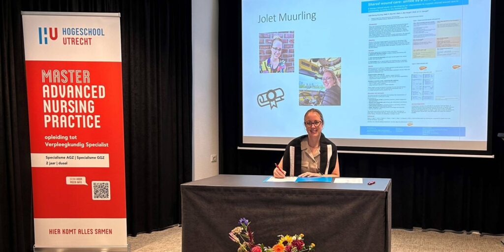 “Eind augustus ben ik afgestudeerd als verpleegkundig specialist AGZ met als expertise wond en dermatologie. Nog vóór de diploma-uitreiking heb ik me geregistreerd in het Verpleegkundig Specialisten Register. Dan was dat maar vast in gang gezet! Want alleen zo kon ik wettelijk erkend als zelfstandig behandelaar aan de slag”, vertelt Jolet (42), die voor VVT-instelling Icare in Drenthe werkt in de wijkverpleging.